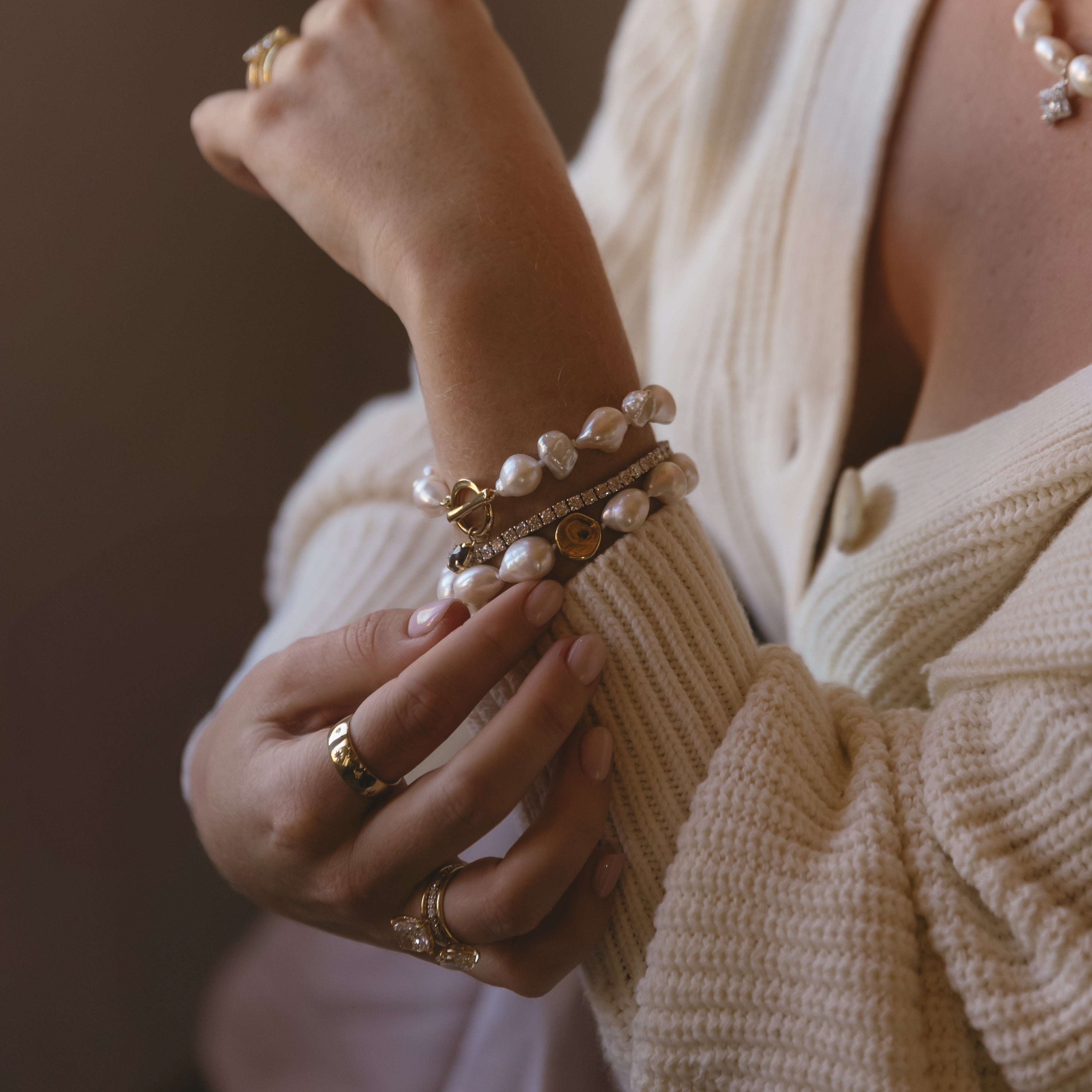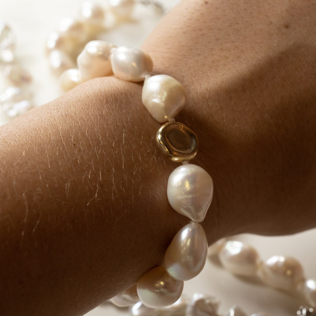 Perfect for adding a touch of glamour to any outfit, this bracelet transitions effortlessly from casual daywear to formal evening attire. Its unique design ensures it will become a cherished piece in your jewellery collection or an unforgettable gift for a loved one. Experience the allure of baroque pearls and the timeless elegance of gold with this stunning bracelet.