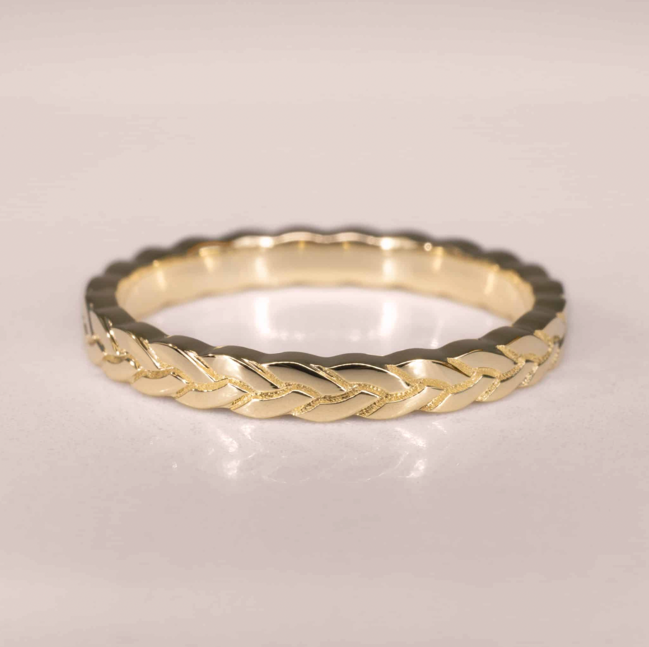 Available in Yellow Gold, White Gold, and Rose Gold, The Calliope Braided Band can also be custom made in 14k gold, 18k gold, or platinum. Simply contact us for a personalised quote if you’d like to explore these premium materials.