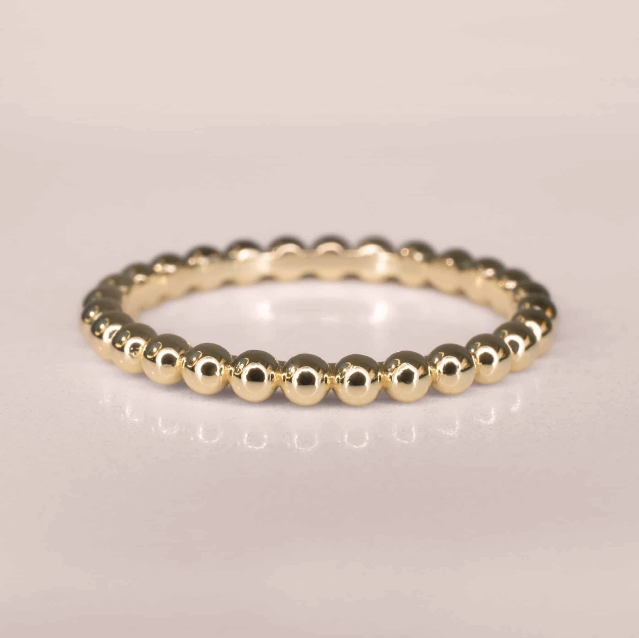 The Malibu offers a fresh, contemporary twist on a classic design. Crafted in 9k Gold, this ring features a distinctive beaded texture, creating a subtle yet eye-catching silhouette that adds dimension to any jewellery collection. Its delicate design makes it the perfect stackable piece, ideal for layering with other rings or wearing solo for a minimalist statement.