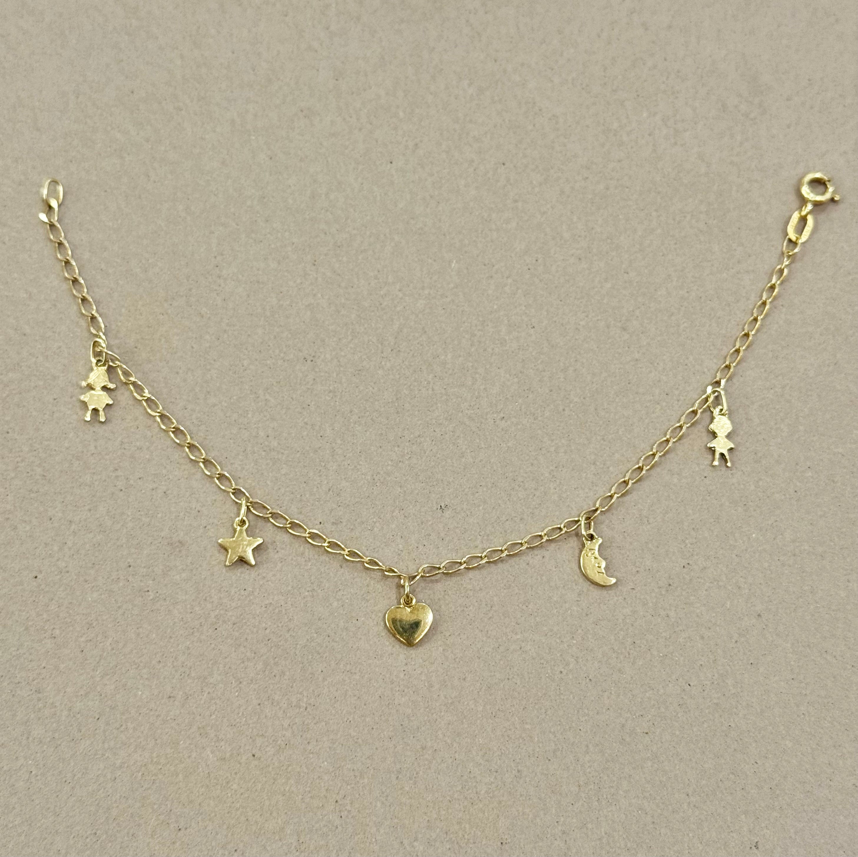 Choose from a variety of charm designs including the classic boy, girl, moon, star, and heart shapes, each with its own unique charm to suit any occasion. Customise your jewellery with these delicate and elegant 9k gold charms or request them in 14k gold, 18k gold or platinum for a more luxurious touch.