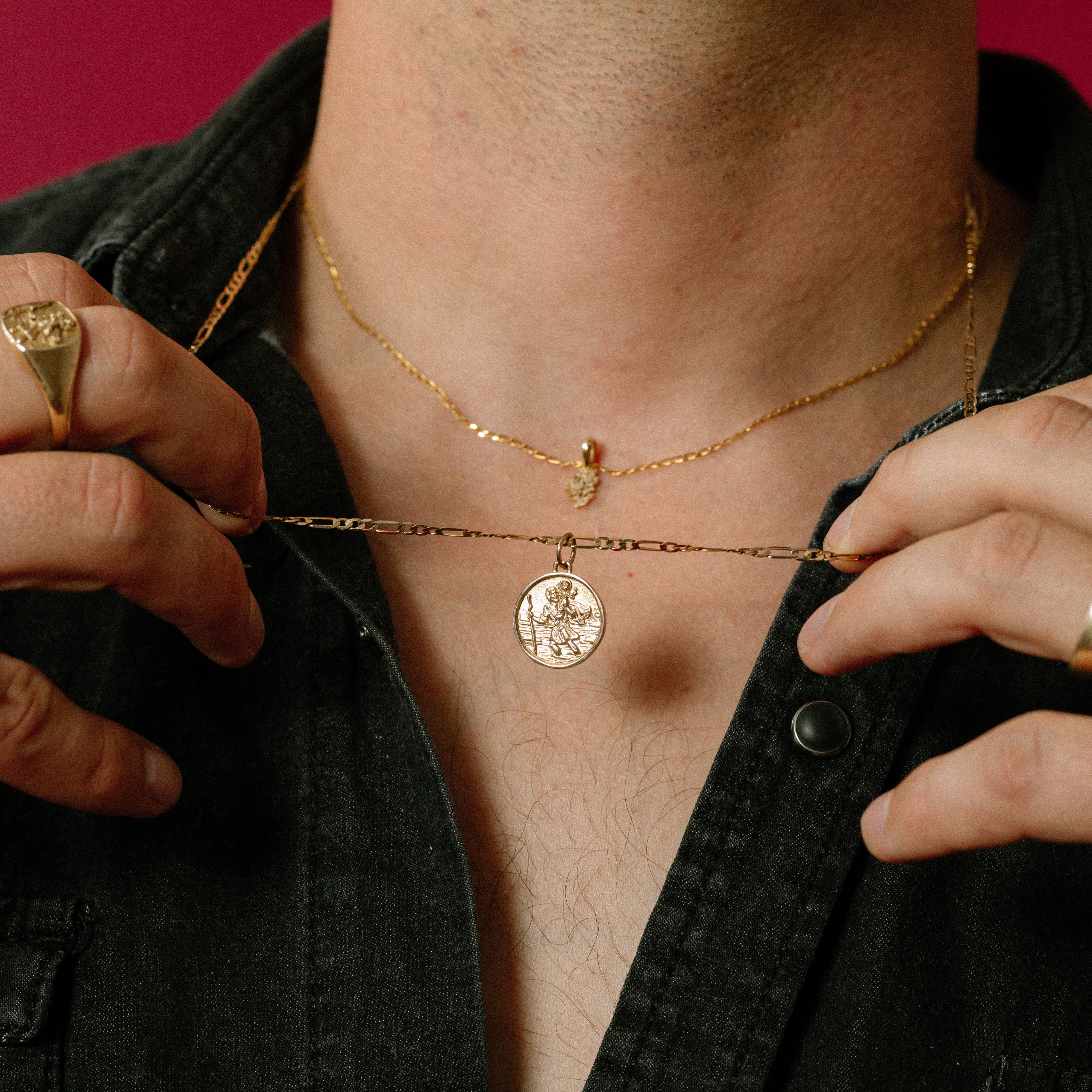 Detailed with the iconic image of Saint Christopher, this pendant honours the in-between the restless heart, the long way home, the almost-forgotten prayer. It’s a symbol of faith carried softly, like something half-remembered in a dream, yet steadfast.