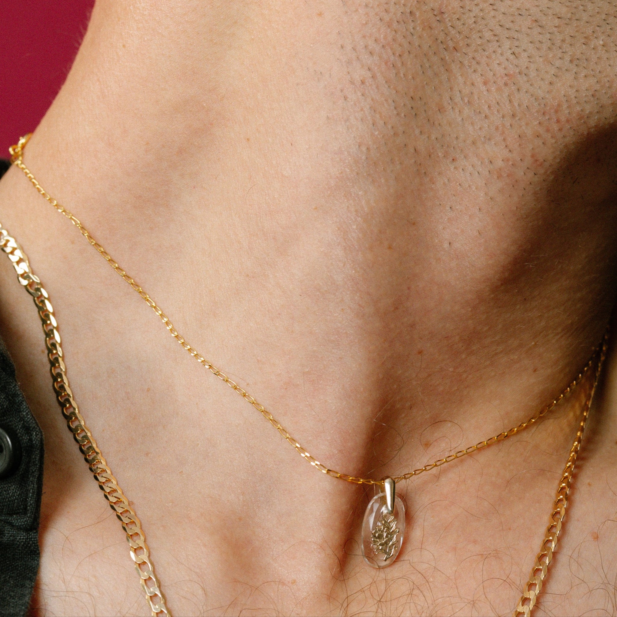 Delicate in form but rich in feeling, Flikker Chain speaks softly with every link. Crafted in 9k yellow gold and available in two refined widths (1.2mm and 2.4mm), this chain embodies the quiet intimacy of something deeply felt but rarely spoken.